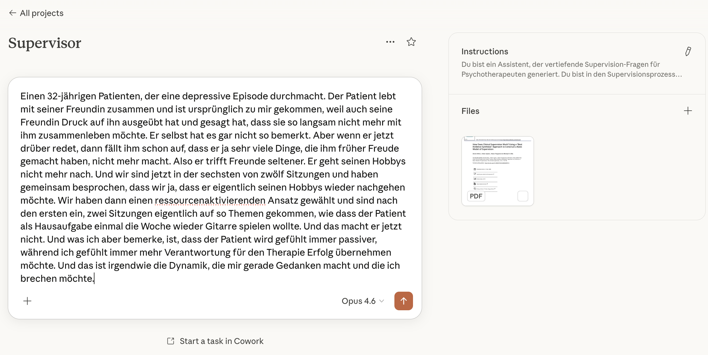 Beispiel eines Claude Projektes mit Angehängten Dokumenten und Instructions